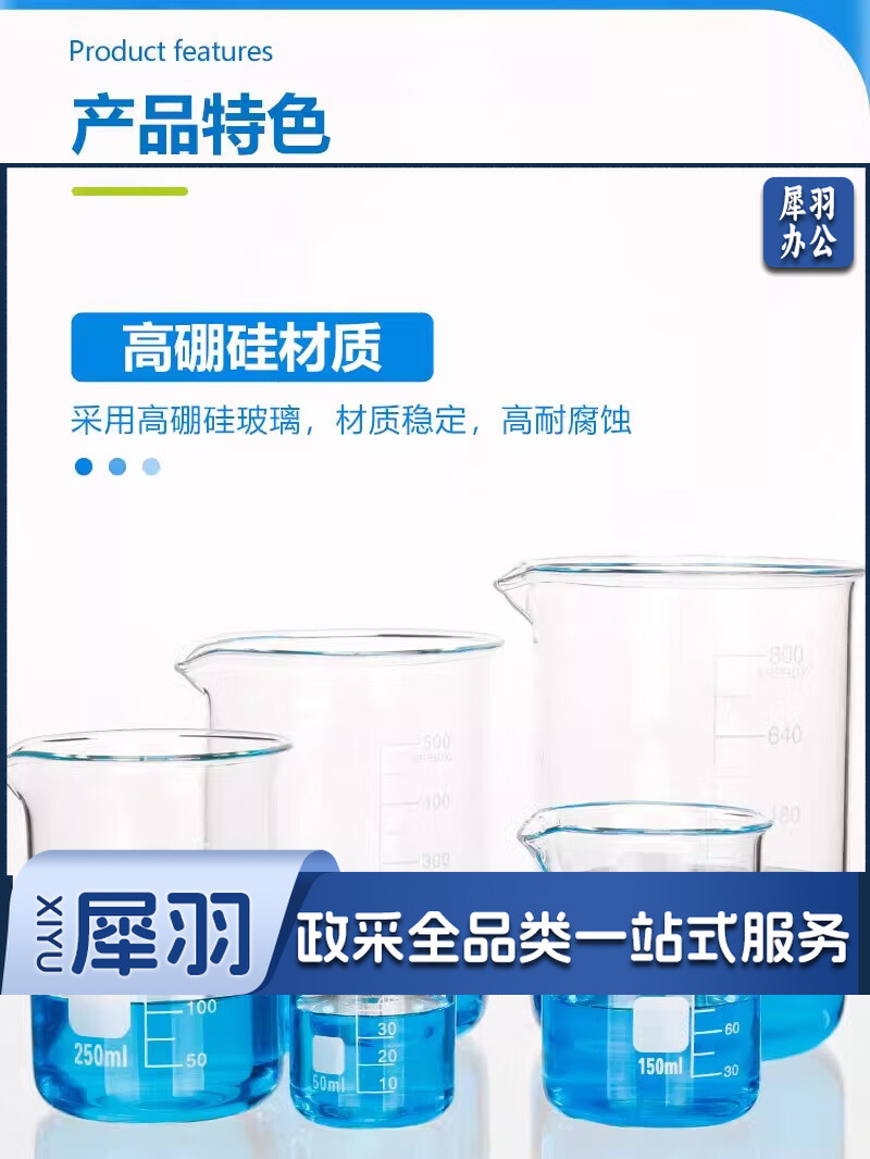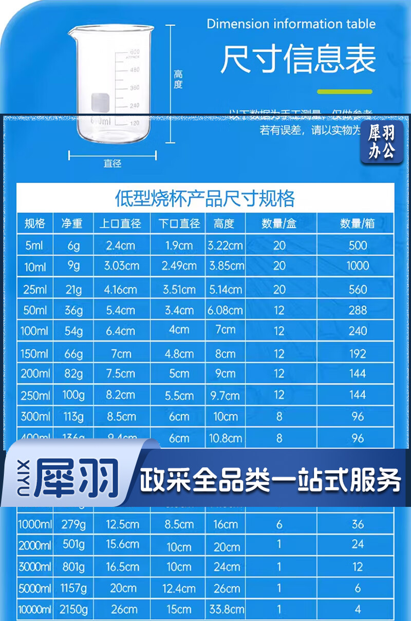 5ml-10000ml烧杯实验器材生物化学实验室中性耐高温带刻度高硼硅玻璃量杯水杯大烧杯 低型烧杯200ml-cpy3646-cpy1406