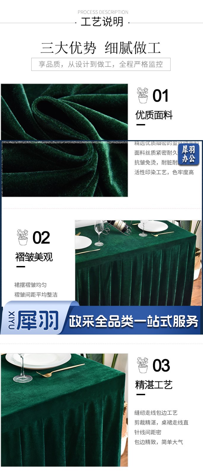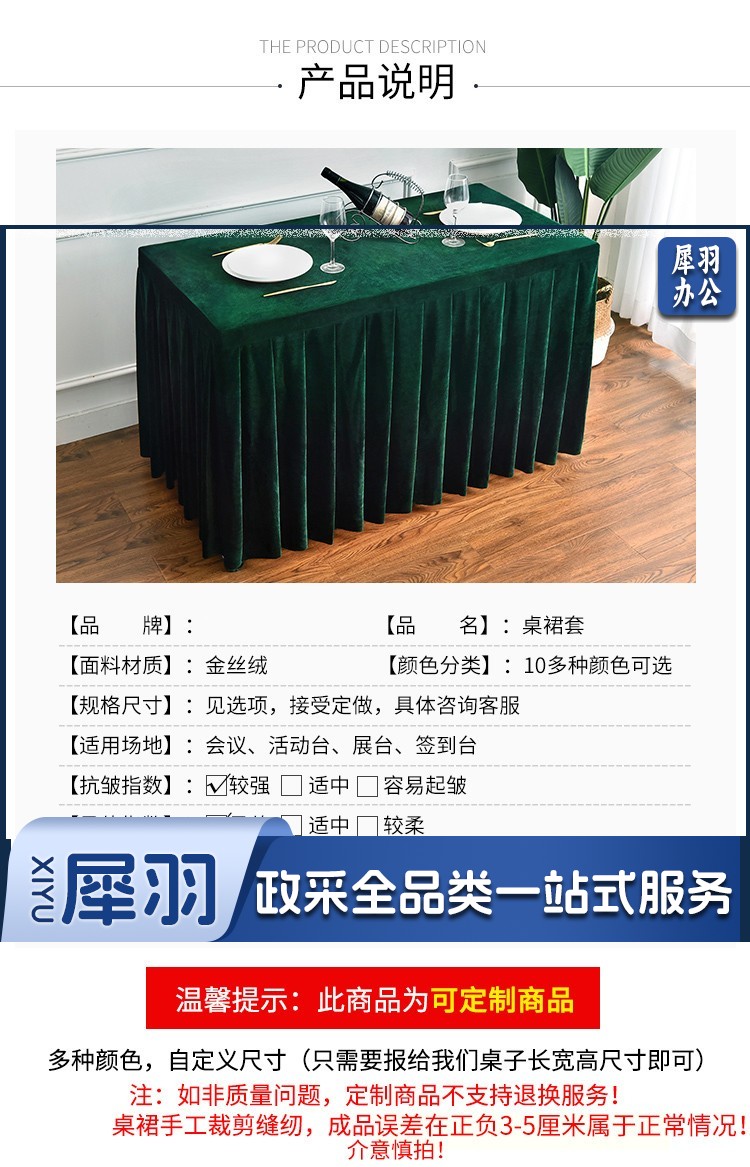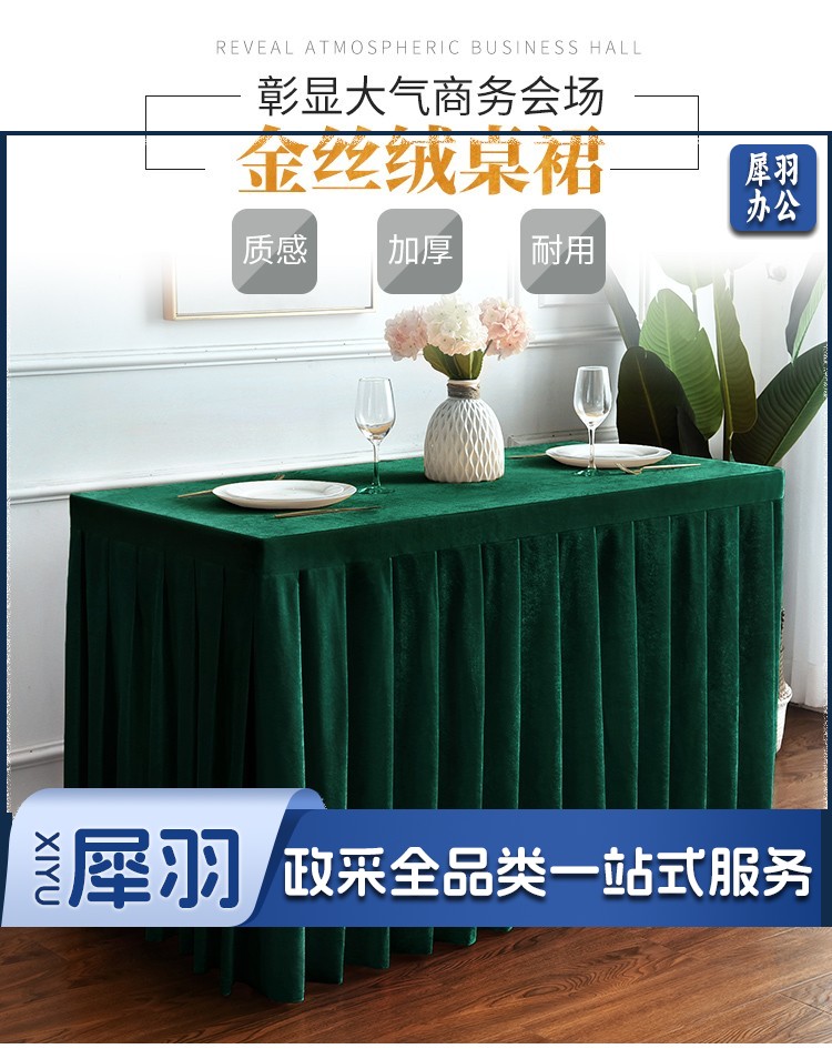 会议桌布长方形长条室桌商务展会桌套罩纯色金丝绒布艺定制桌裙 墨绿色(开会展会等都可) 180x60x高75cm(支持定制)-cpy5310