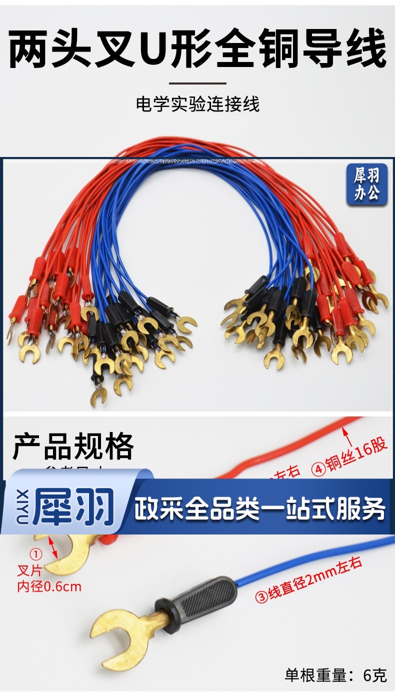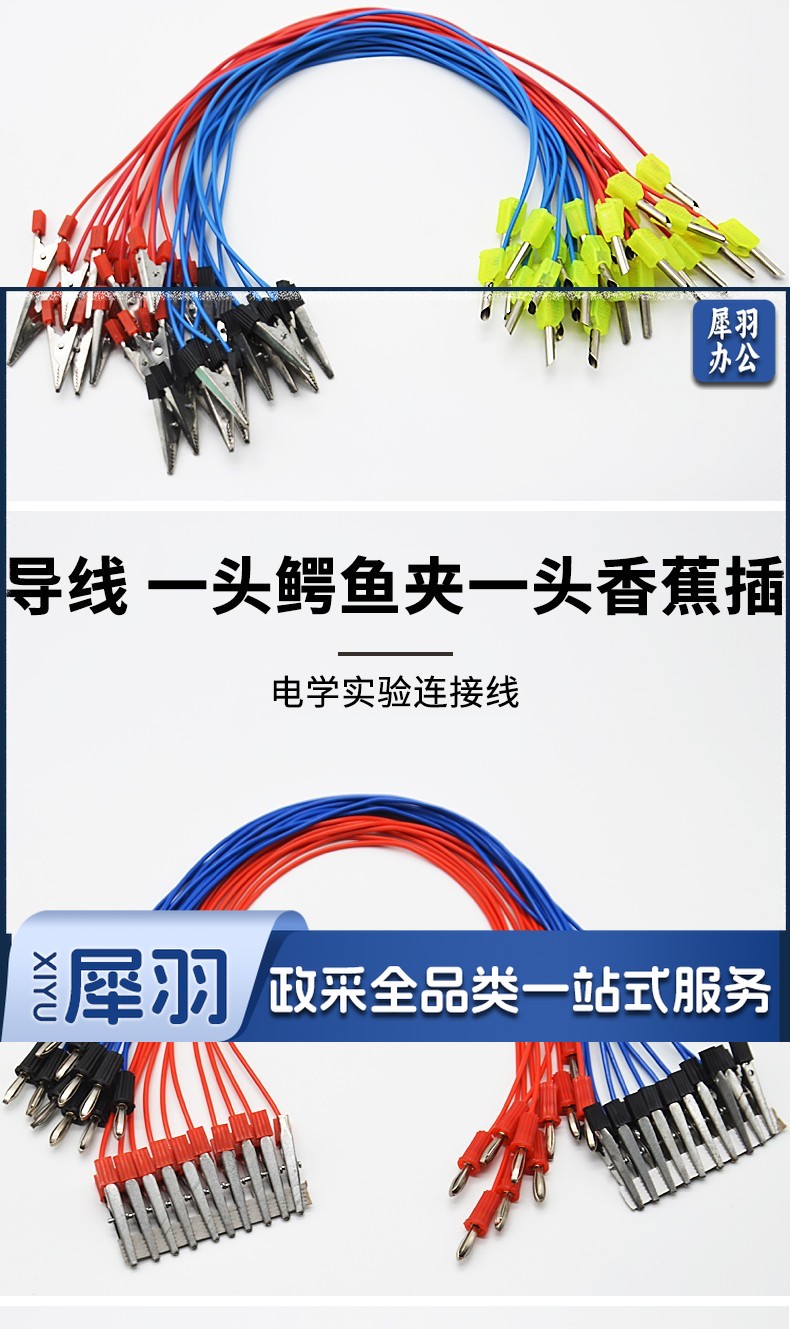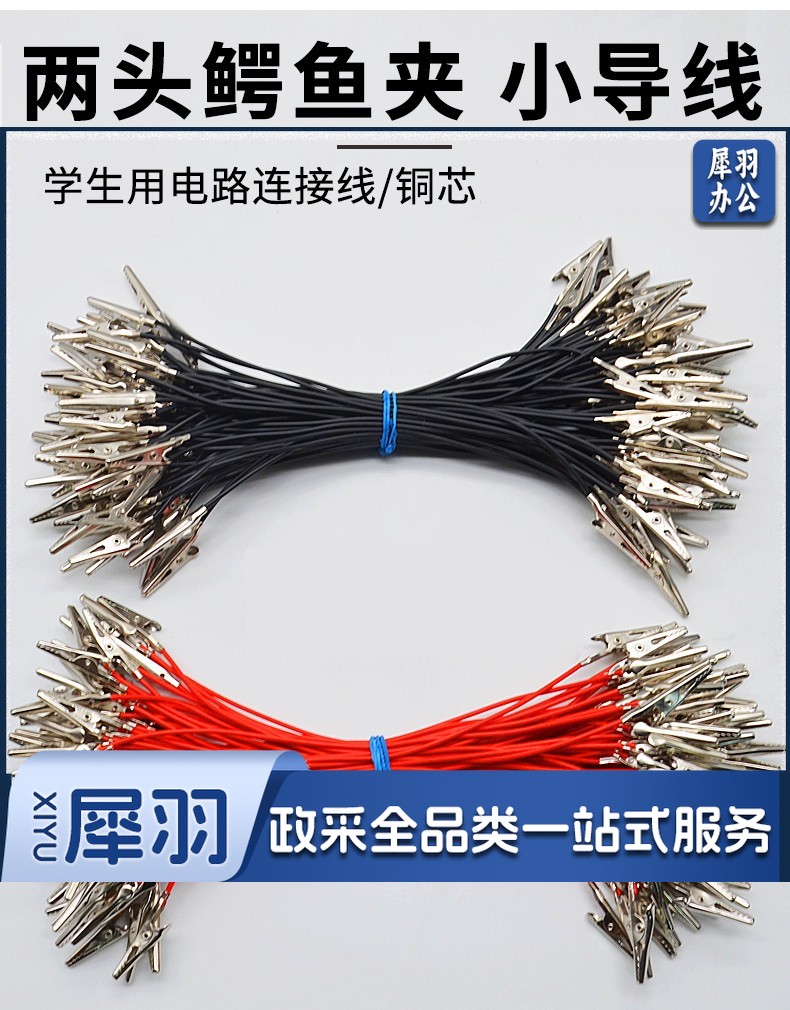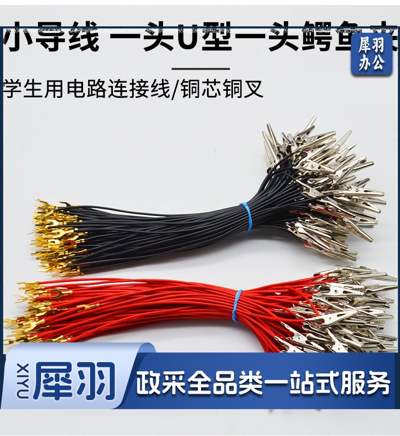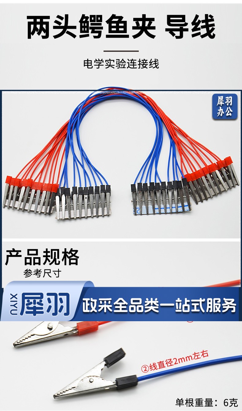 导线实验用连接线电学实验器材U形叉空心插铜芯鳄鱼夹10根 两头鳄鱼夹 线长约20cm-cpy3674