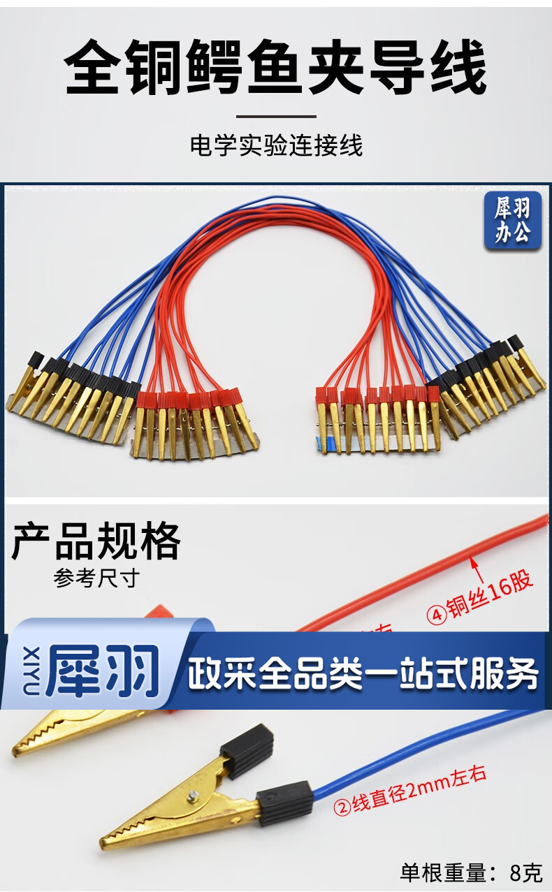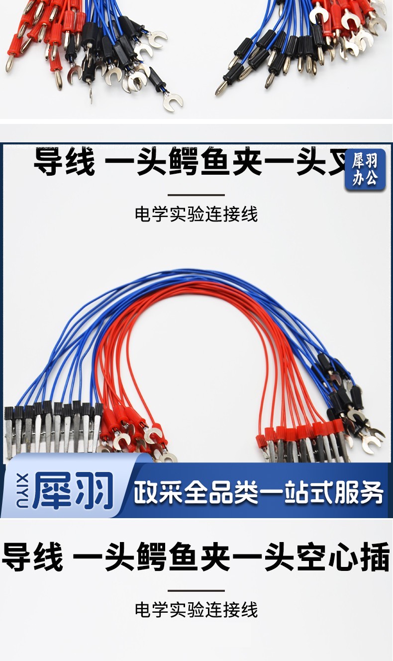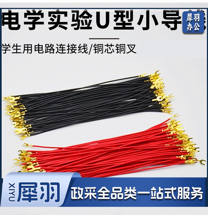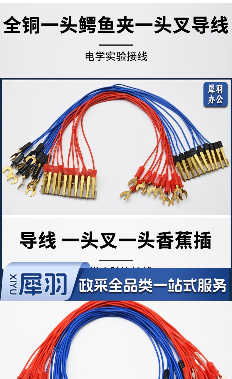 导线实验用连接线电学实验器材U形叉空心插铜芯鳄鱼夹10根 两头鳄鱼夹 线长约20cm-cpy3674