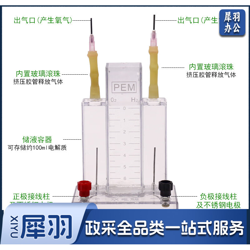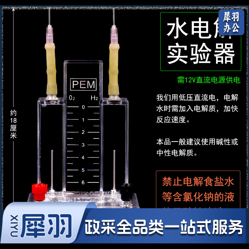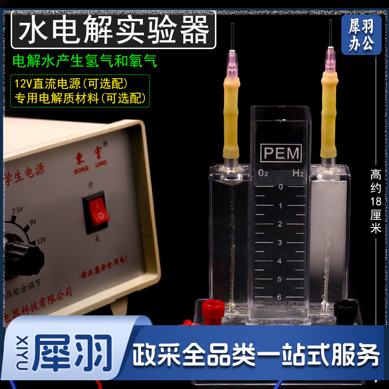 水电解实验器J26001霍夫曼水电解演示器实验室电解水制取氢气氧气装置全套装高中化学教学仪器器材电源 小号水电解+12V学生电源+导线-cpy3693