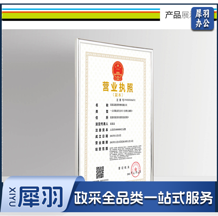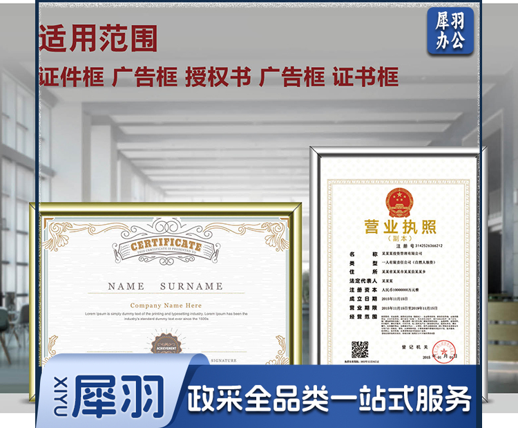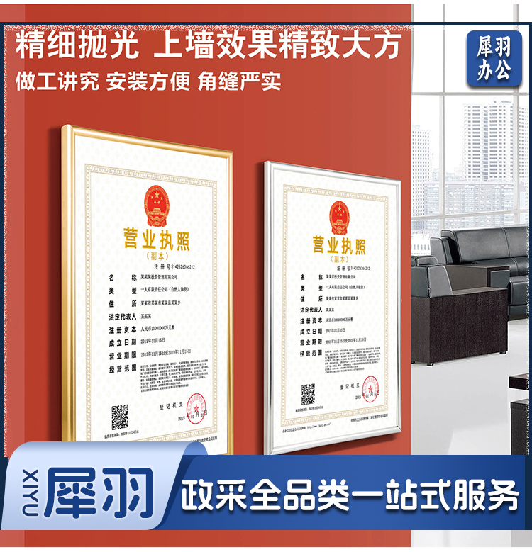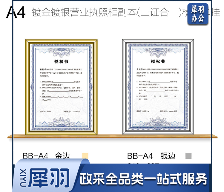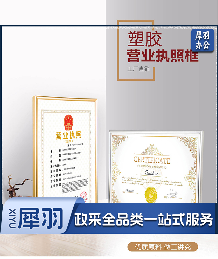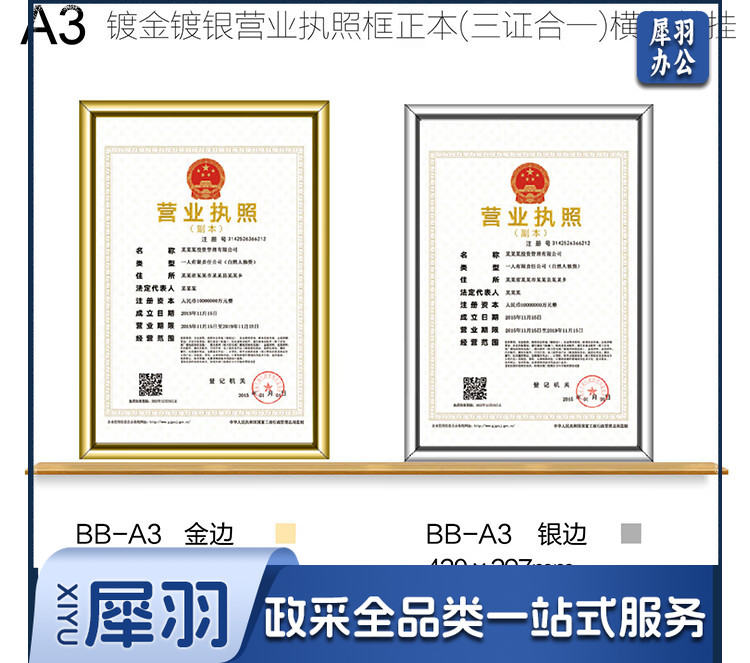 营业执照正本框A3相框挂墙仿铝合金画框装裱保护套工商税务卫生许可证书荣誉证书奖状框框架金色BB-A3-cpy4009-cpy9110