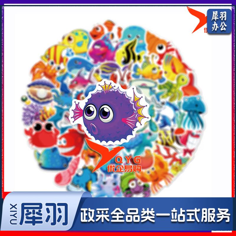 卡通海洋生物涂鸦贴纸贴画(不重复)行李箱水杯文具儿童防水贴纸50-60张-cpy3552-cpy891
