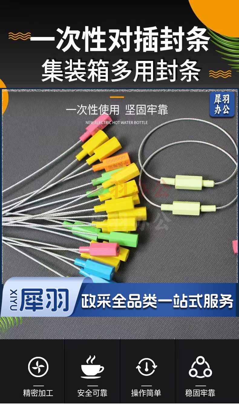 对插式施封锁货柜锁一次性钢丝铅封安全封条物流封签电表集装箱封(大约28cm)100起拍