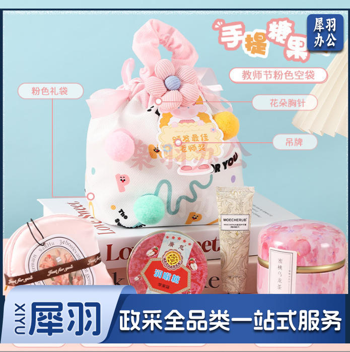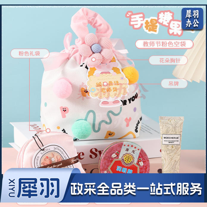 教师节礼物高级感送老师创意抽绳手提礼包实用学校活动员工伴手礼(教师节润喉糖礼袋)2个起拍