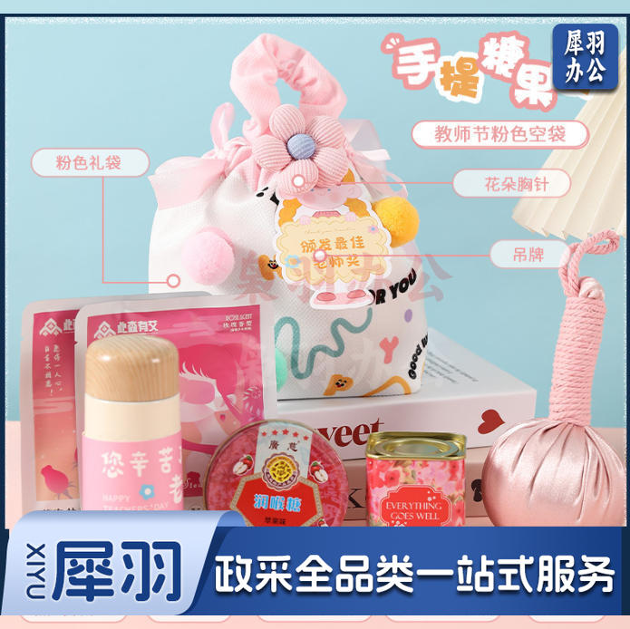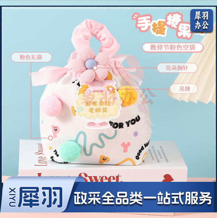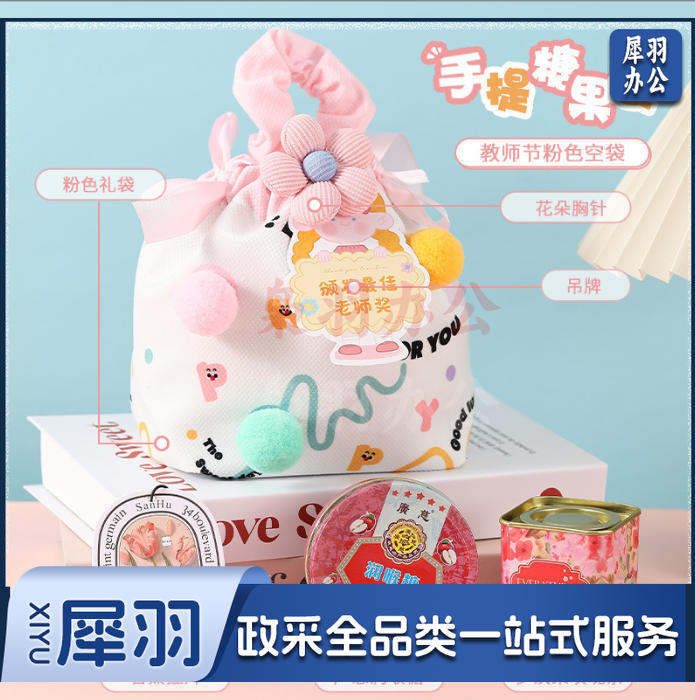 教师节礼物高级感送老师创意抽绳手提礼包实用学校活动员工伴手礼(教师节润喉糖礼袋二)2个起拍