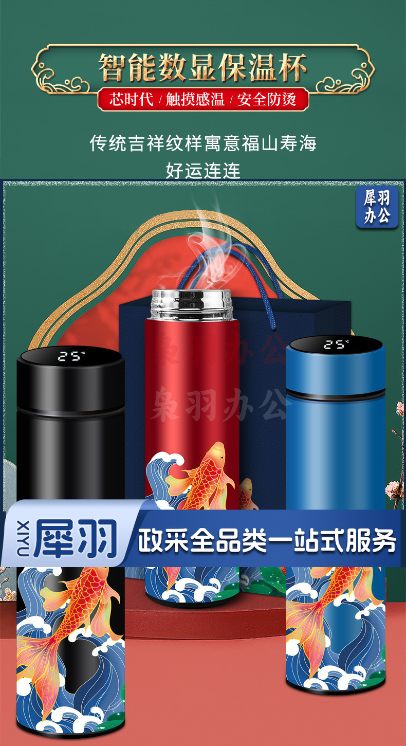 水杯定制雨伞定制商务伴手礼品套装公司企业银行周年庆定制礼物(锦鲤抽拉礼盒装(温控杯+自动伞)红色