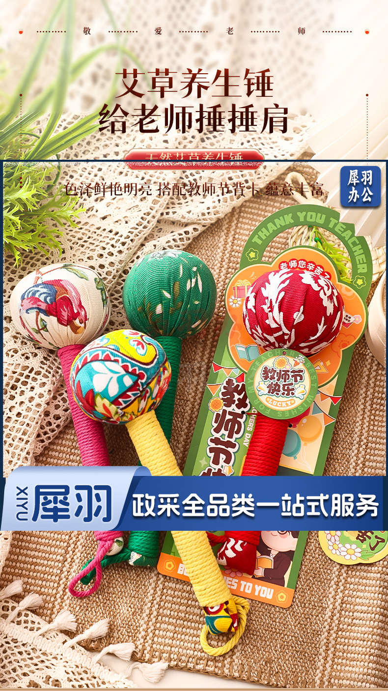 教师节礼物2025新款养生艾草锤伴手礼袋高档送男女老师实用小礼品艾草锤(柠檬黄)