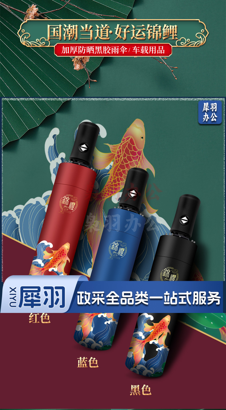 水杯定制雨伞定制商务伴手礼品套装公司企业银行周年庆定制礼物(锦鲤红色自动伞/抽拉礼盒装