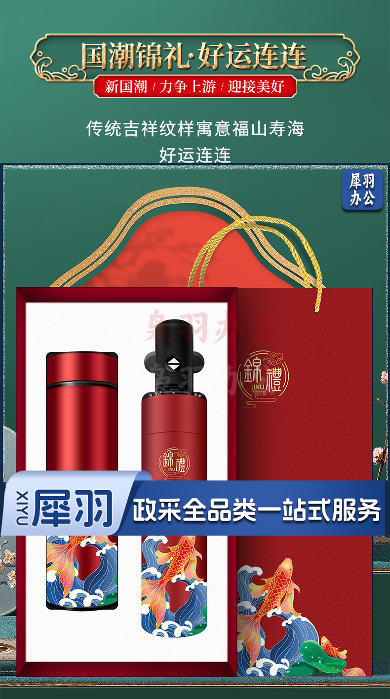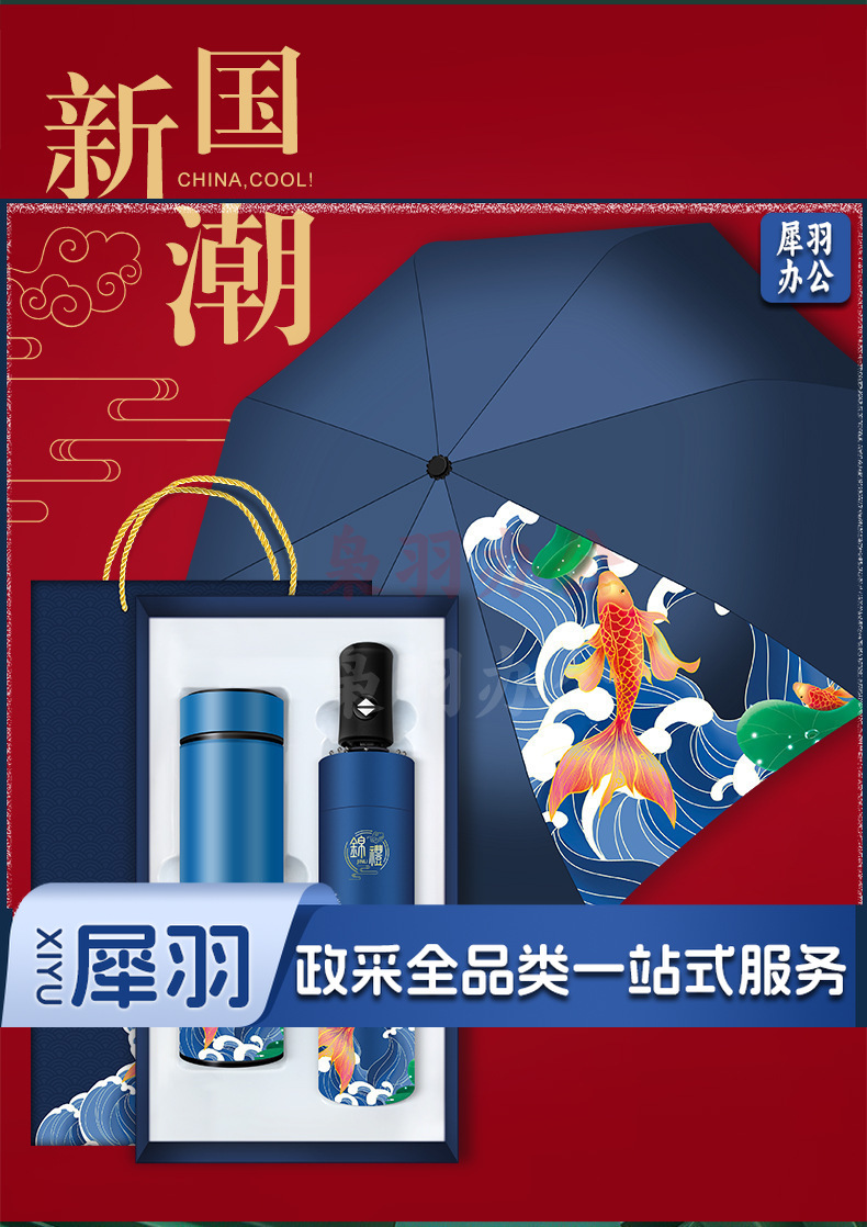 水杯定制雨伞定制商务伴手礼品套装公司企业银行周年庆定制礼物(蓝色(温控杯+自动伞)抽拉礼盒装