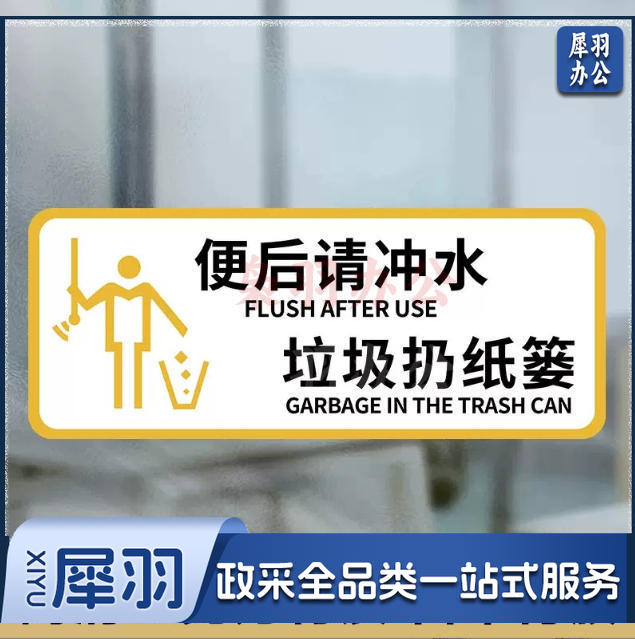 厕所标识牌厕所提示语贴纸便后冲水提示牌卫生间来也匆匆去也冲冲马桶易堵纸厕入篓便后冲水随手冲一冲废纸扔纸篓10x24cm
