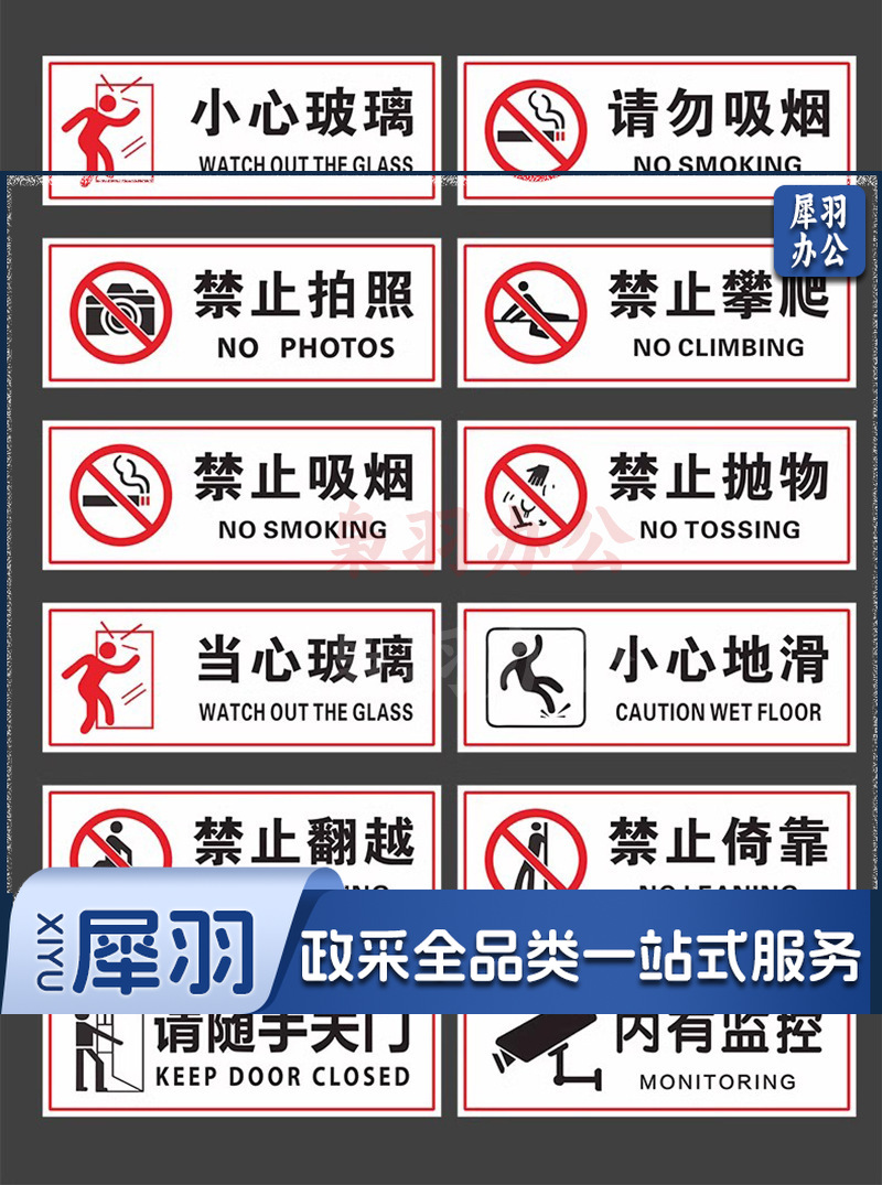 小心玻璃【常规】【25x10cm】小心玻璃提示禁止吸烟透明贴纸小心地滑禁止倚靠禁止翻越商场提示