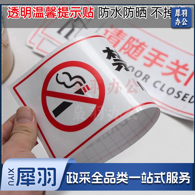 请随手关门【25x10cm】小心玻璃提示禁止吸烟透明贴纸小心地滑禁止倚靠禁止翻越商场提示