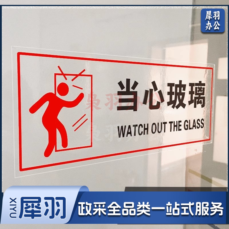 禁止拍照【25x10cm】小心玻璃提示禁止吸烟透明贴纸小心地滑禁止倚靠禁止翻越商场提示