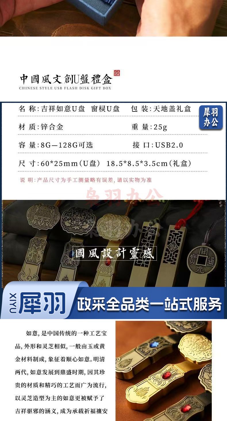 8GB U盘 中国风U盘64g企业学校纪念个性礼品如意四叶草大容量定制金属u盘8B-2.0-10MB/S(可定制)