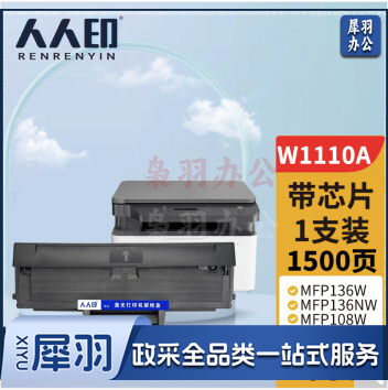 人人印 W1110a硒鼓【含芯片版】适用110a硒鼓惠普136a mfp136w墨盒136nw 108w 108a粉盒138pn 138pw打印机