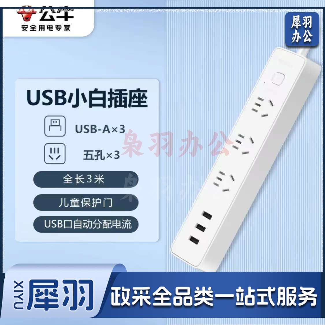 公牛(BULL)新国标USB插座 插线板/插排/排插/ 3usb接口 3孔全长3米带保护门 GN-B403U 总控开关