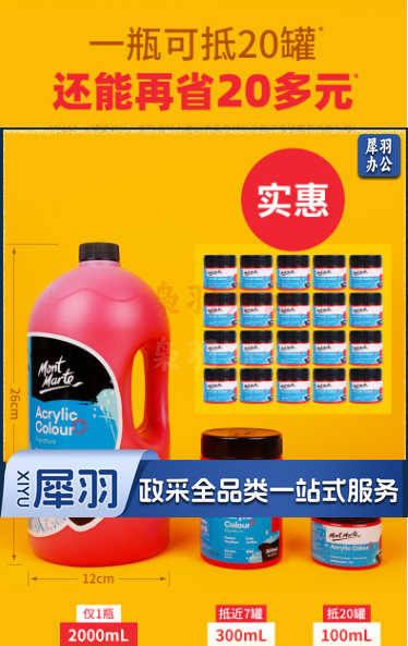 蒙玛特(Mont Marte) 2L丙烯颜料 大瓶墙绘手绘颜料画室专用大桶 朱红 MSCH2019