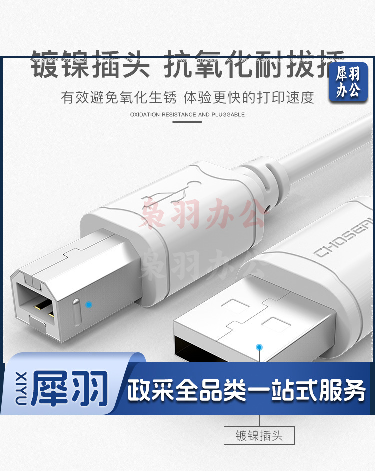 秋叶原(CHOSEAL)高速USB打印机数据线 2.0打印机线 方口usb打印线 电脑周边数据线 1.5米 QS5307T1D5