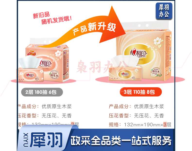 心相印软抽纸面巾 经典系列 3层110抽8包 S码(新旧品 层抽包数不同 随机发货 具体看详情页 )