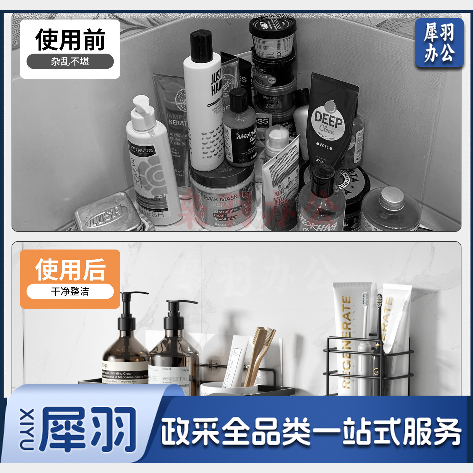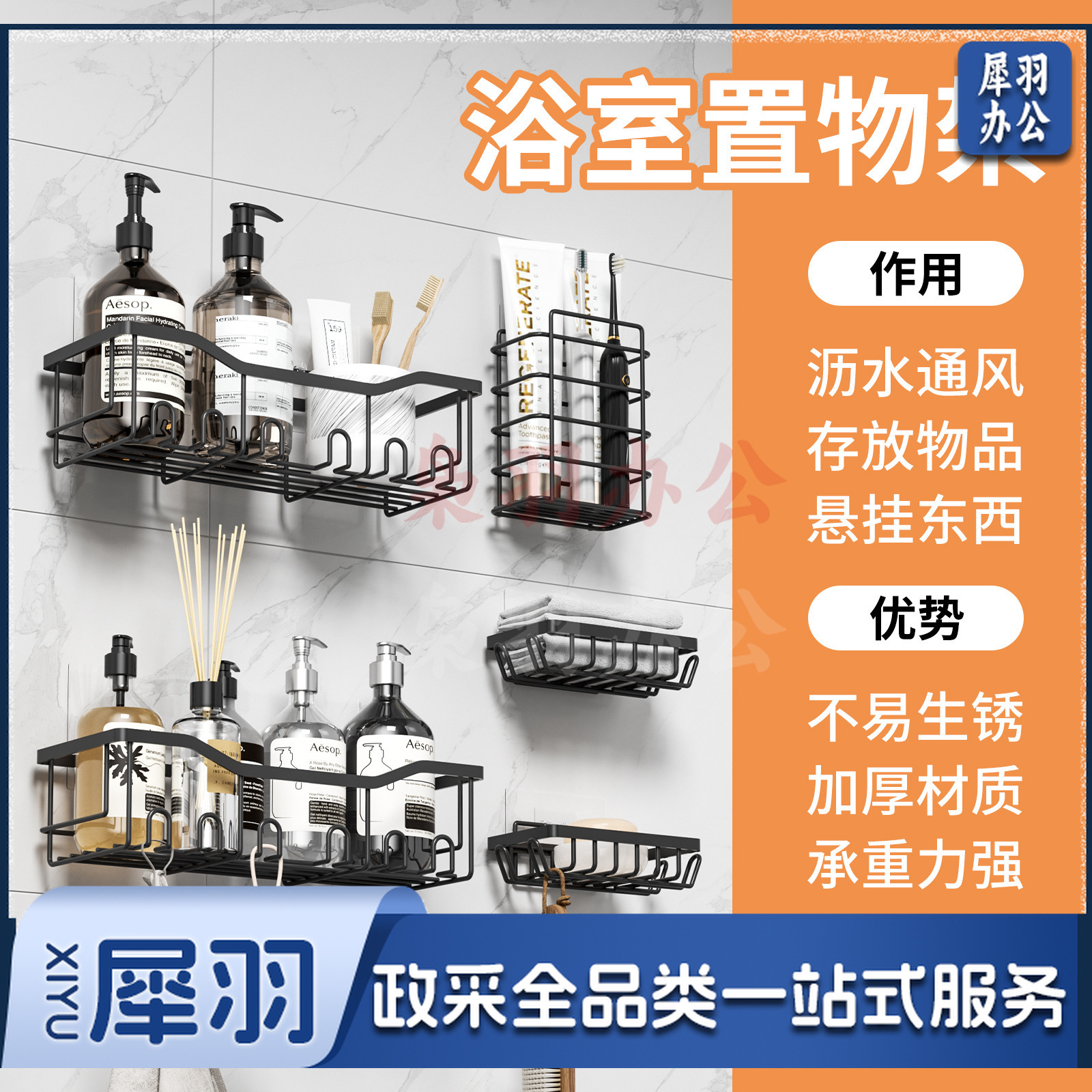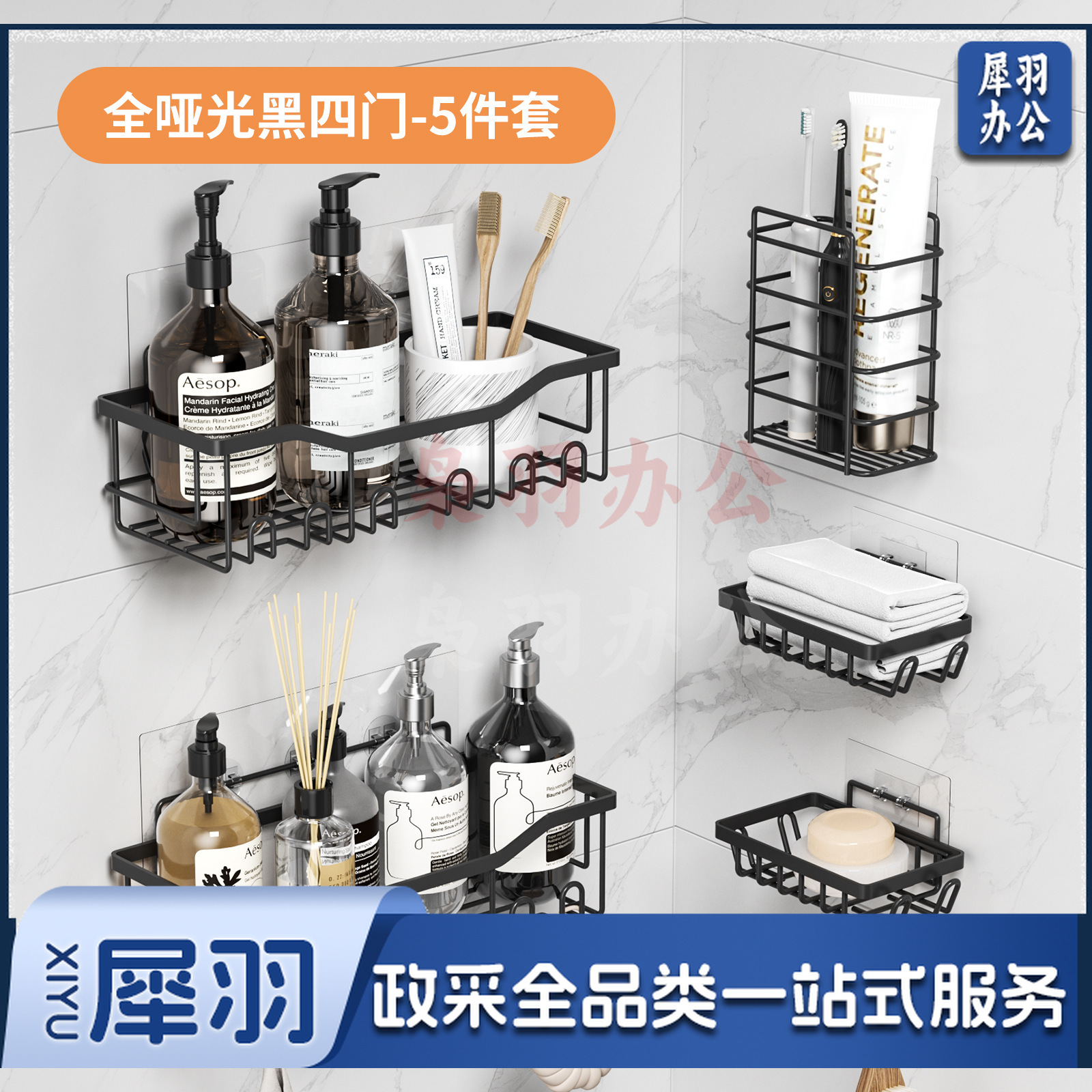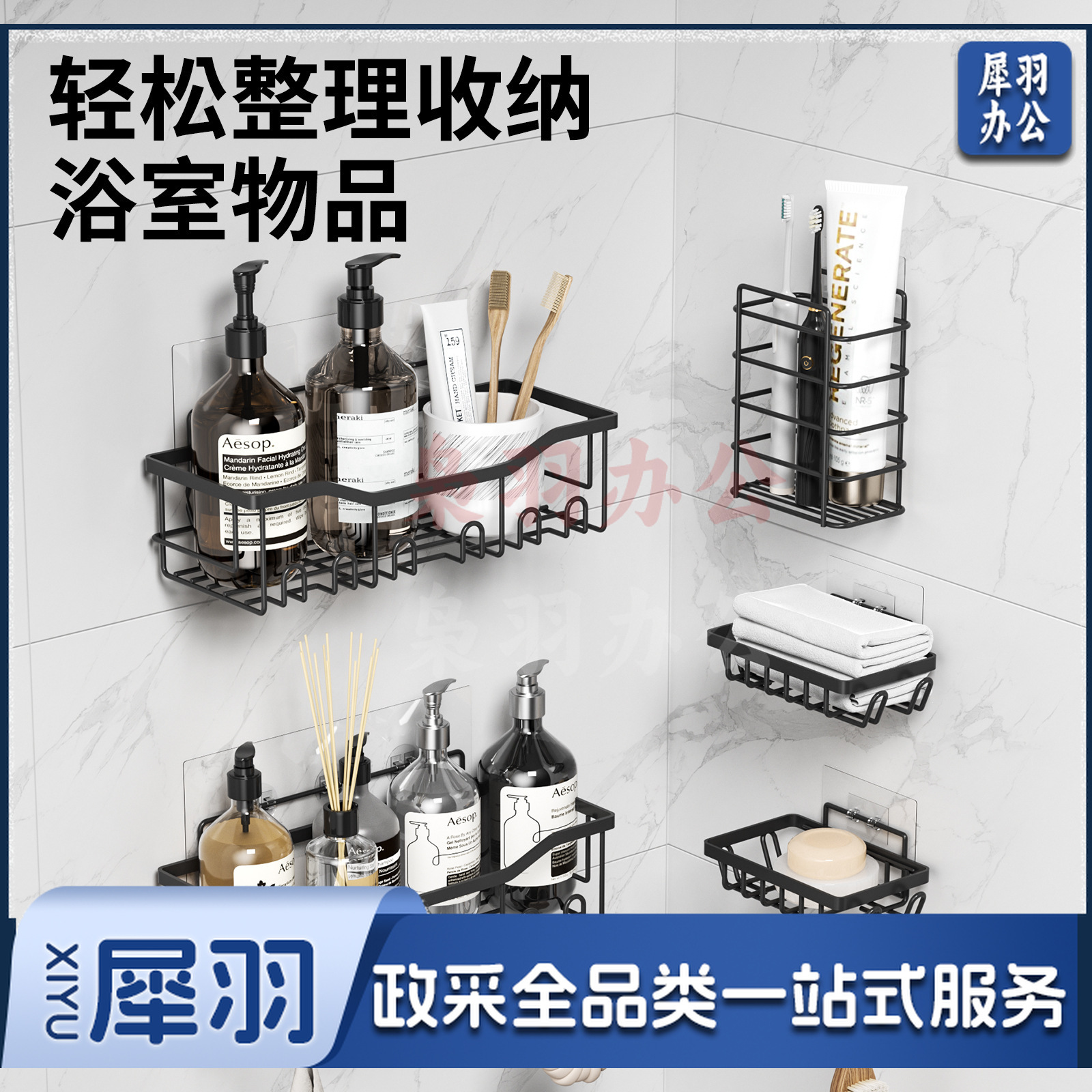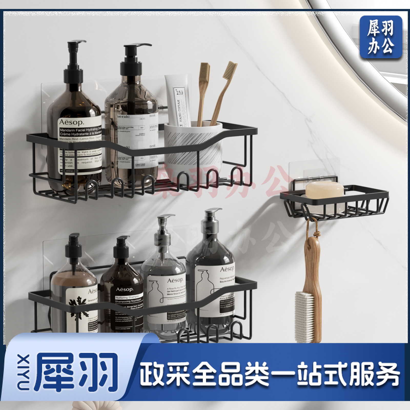 免打孔收纳(置物两件套)浴室置物铁艺卫生间墙上壁挂式洗漱用品肥皂架子