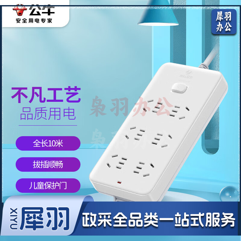 公牛(BULL) 新国标插座/插线板/插排/排插/接线板/拖线板 6位总控全长10米 GN-109K
