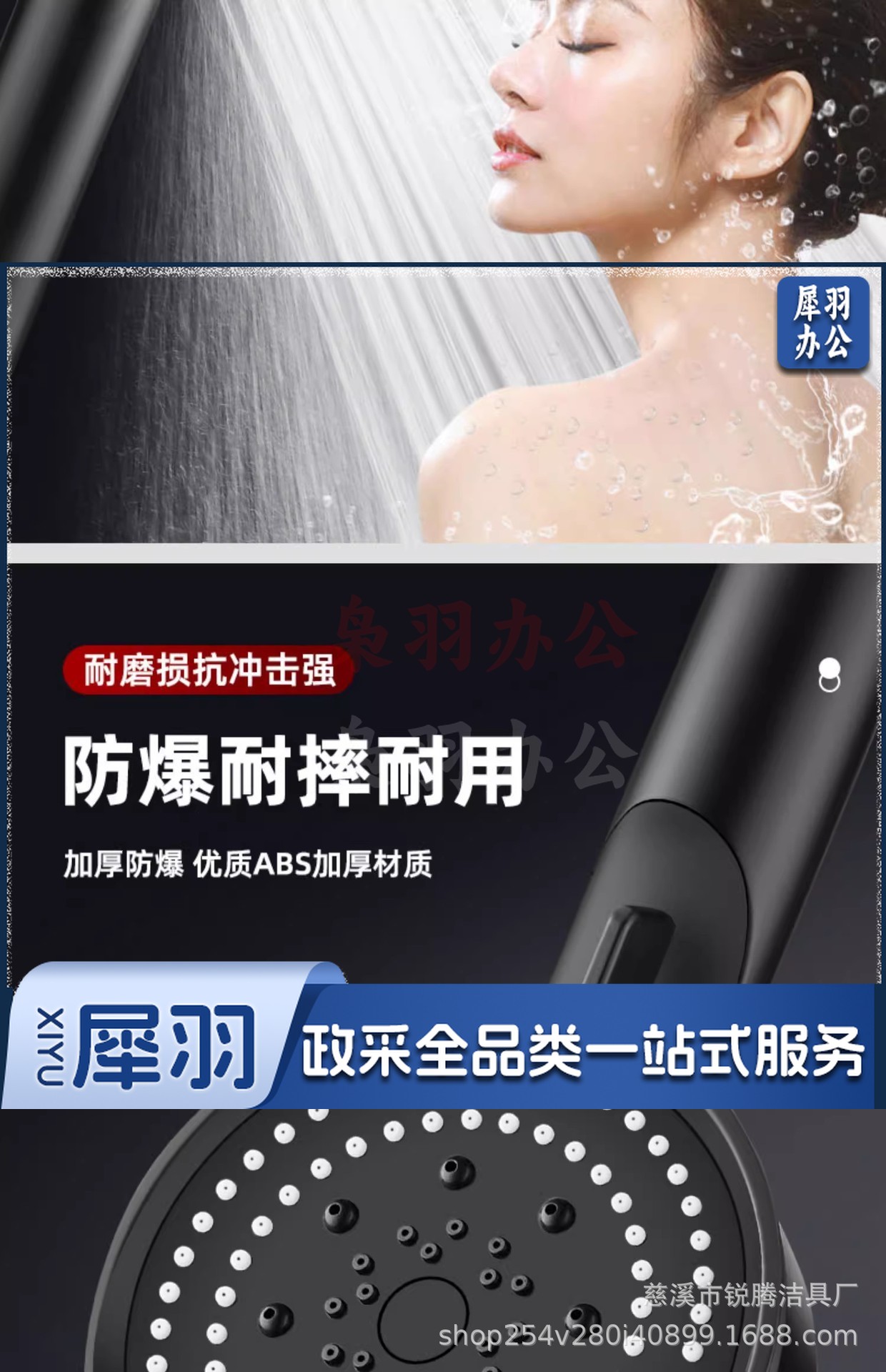 花洒喷头 淋浴喷头 淋浴配件 花洒配件 五档多功能大出水喷雾增压淋浴手持式花洒喷头磨砂黑色莲蓬头套装(1.4米小双扣全塑袋装)