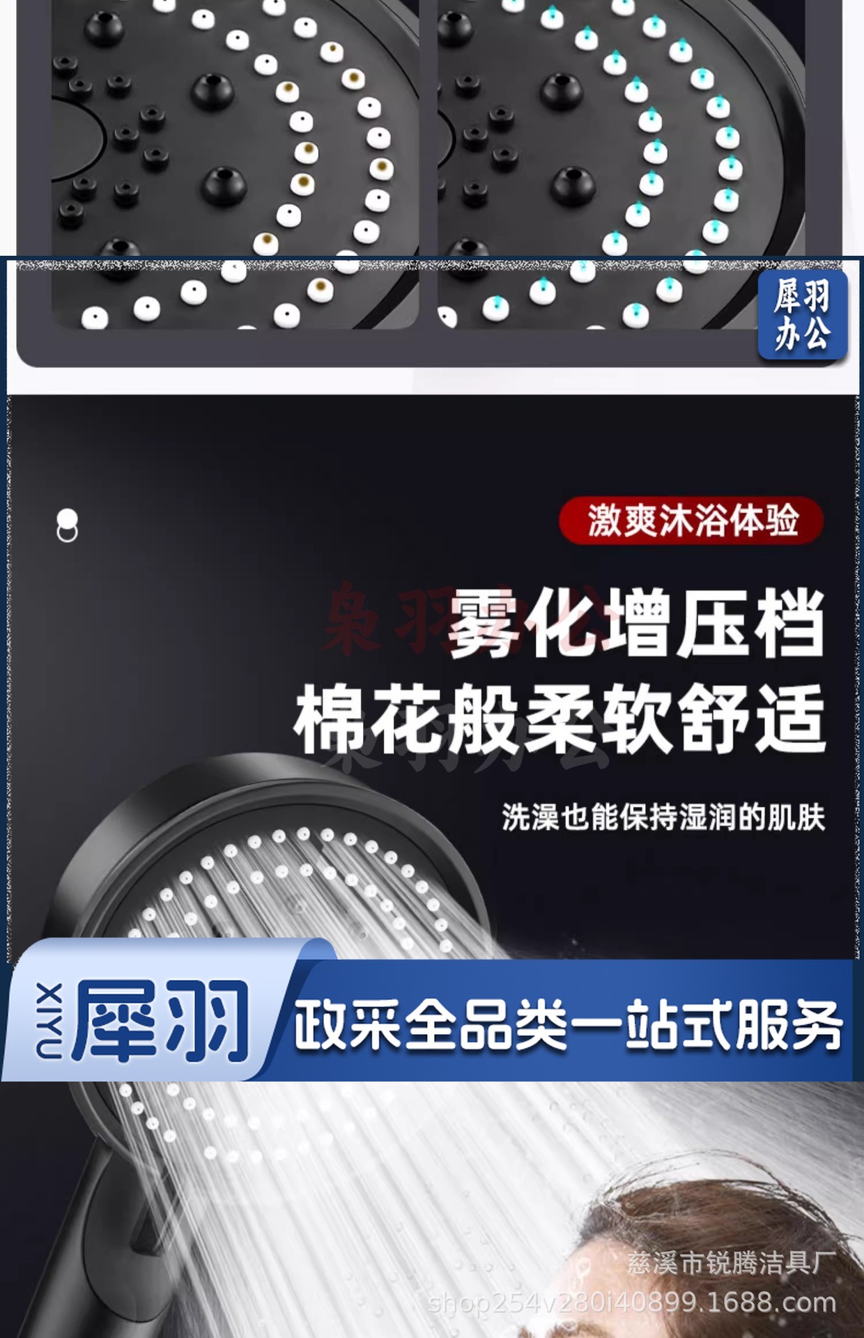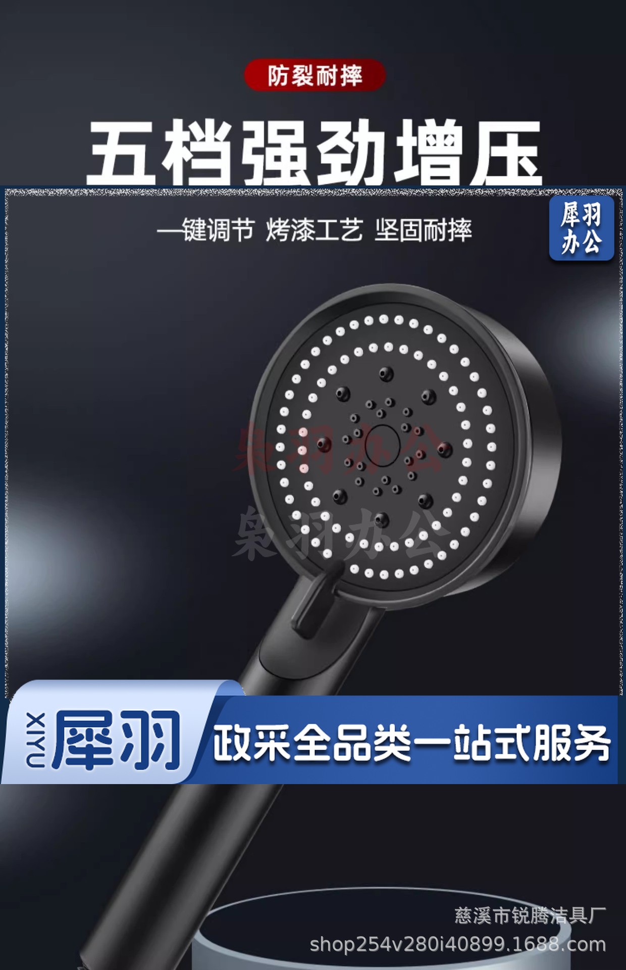 花洒喷头 淋浴喷头 五档多功能大出水喷雾增压淋浴手持式花洒喷头磨砂黑色莲蓬头套装( 小银五档软刺十1.5米银管水洗锌钢十自封袋)