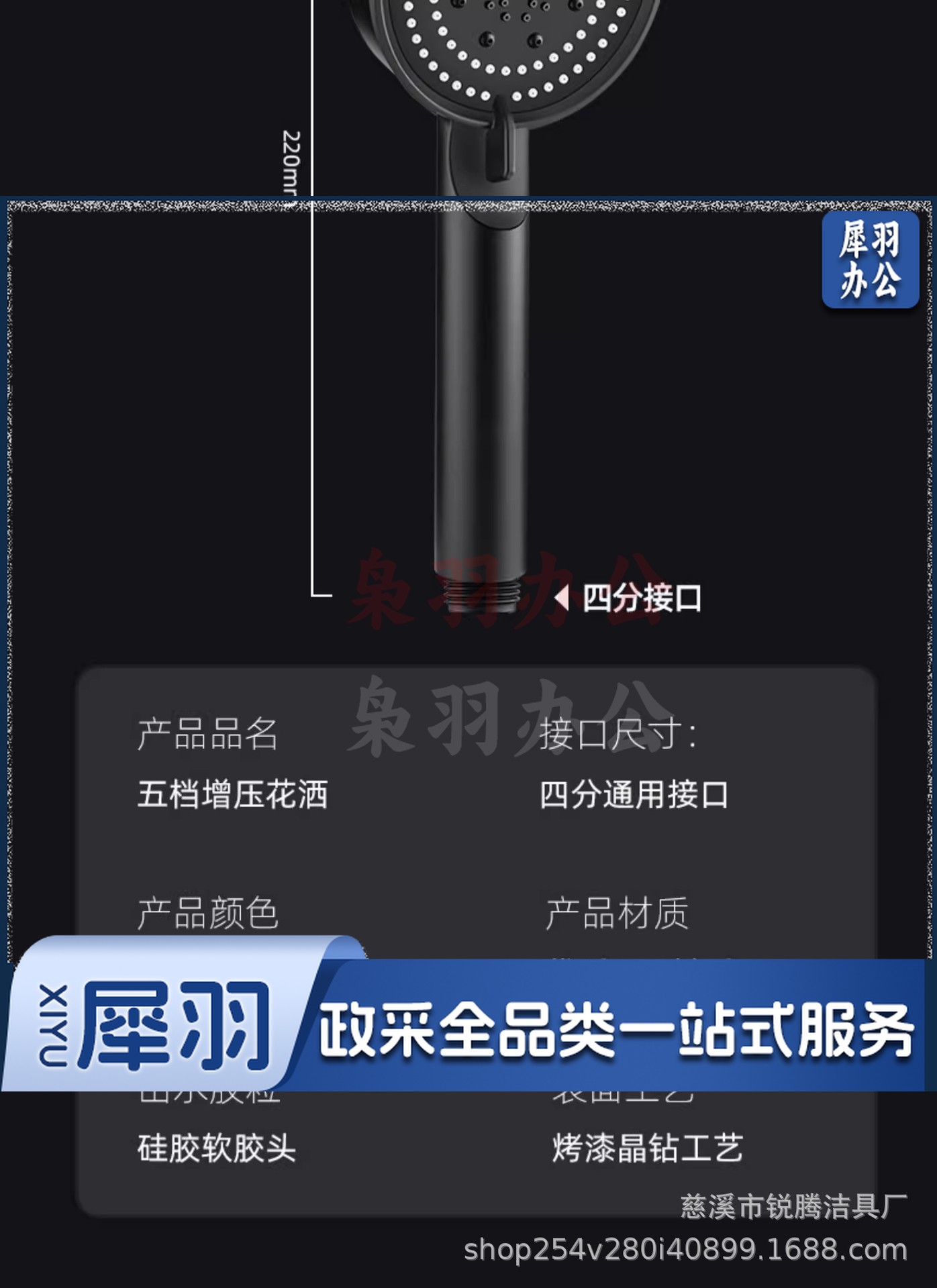 花洒喷头 淋浴喷头 淋浴配件 花洒配件 五档多功能大出水喷雾增压淋浴手持式花洒喷头磨砂黑色莲蓬头套装(1.4米黑管锌钢)