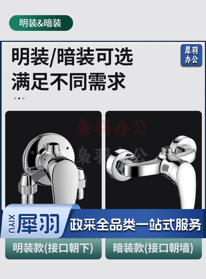 花洒淋浴配件套装公共澡堂淋浴室(【精铜】明装龙头七字+不锈钢防爆喷头)洗浴池宾馆学校工地简易单水明装暗装冷热花洒套装