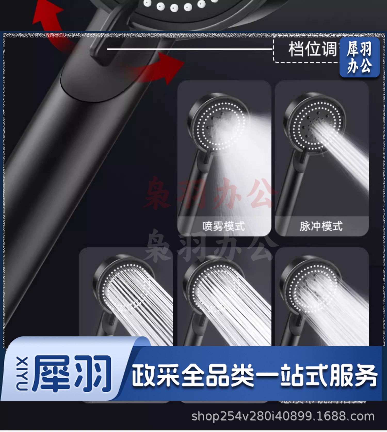 五档多功能大出水喷雾增压淋浴手持式花洒喷头磨砂黑色莲蓬头套装(小黑色五档软刺)