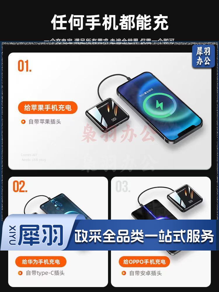 新国标3C认证 2025新款充电宝20000毫安快充超薄便携四线快充适用华为小米苹果 标准版炫酷黑