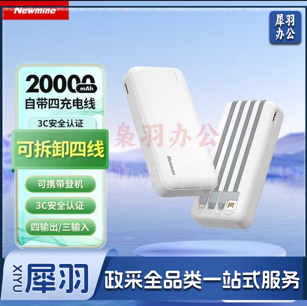 纽曼 (Newmine )新国标3C认证移动电源20000mAh自带充电线大容量充电宝可飞机高铁