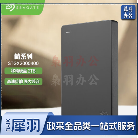 希捷 移动硬盘 2TB USB3.0 简系列 2.5英寸 黑色便携商务