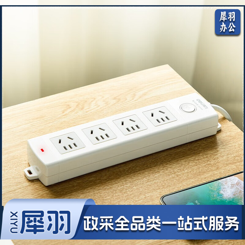 得力18203插座_4组_3米_PVC袋装(个)