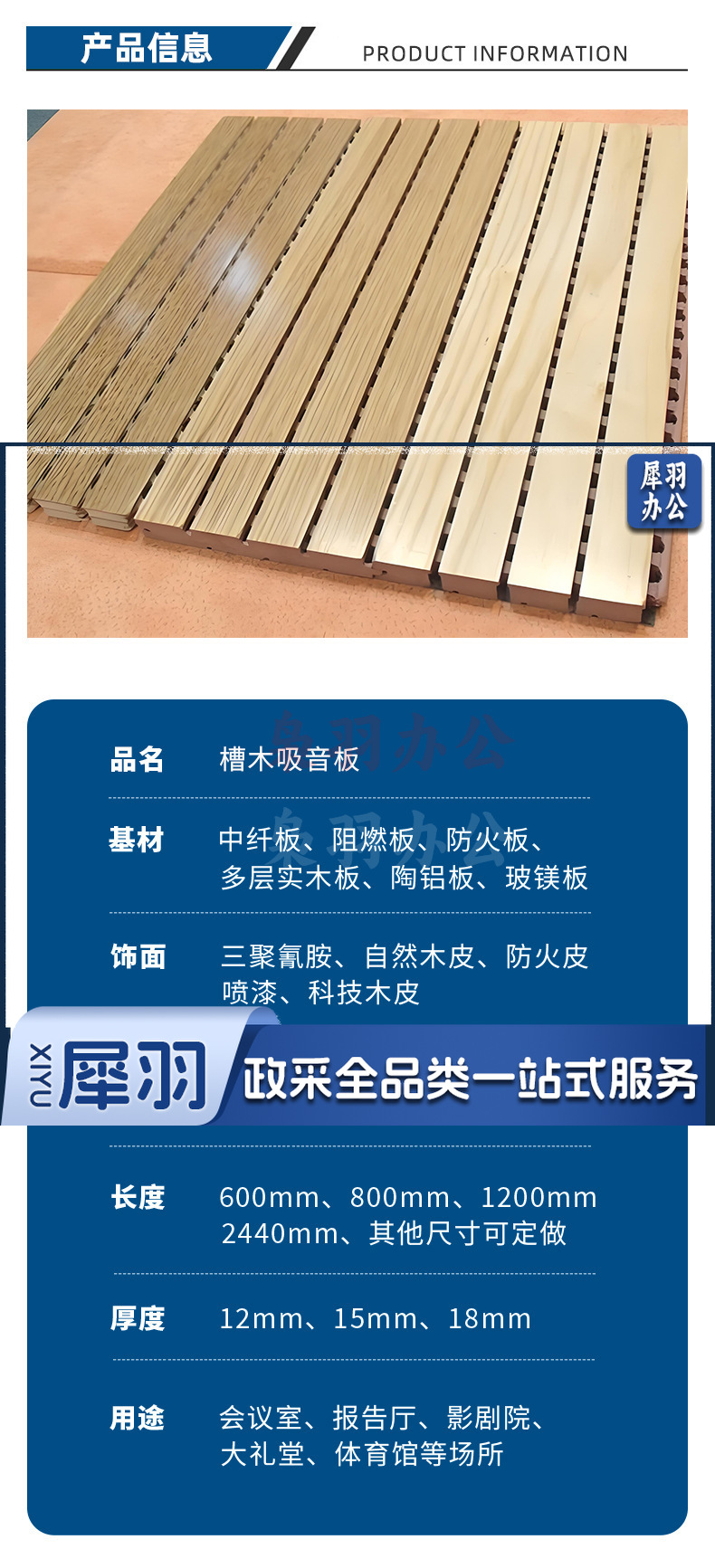 吸音板槽木静音板槽孔吸音板A级阻燃木质槽木吸音板音乐厅剧院墙面工程体育馆专用(环保三胺基材12mm)