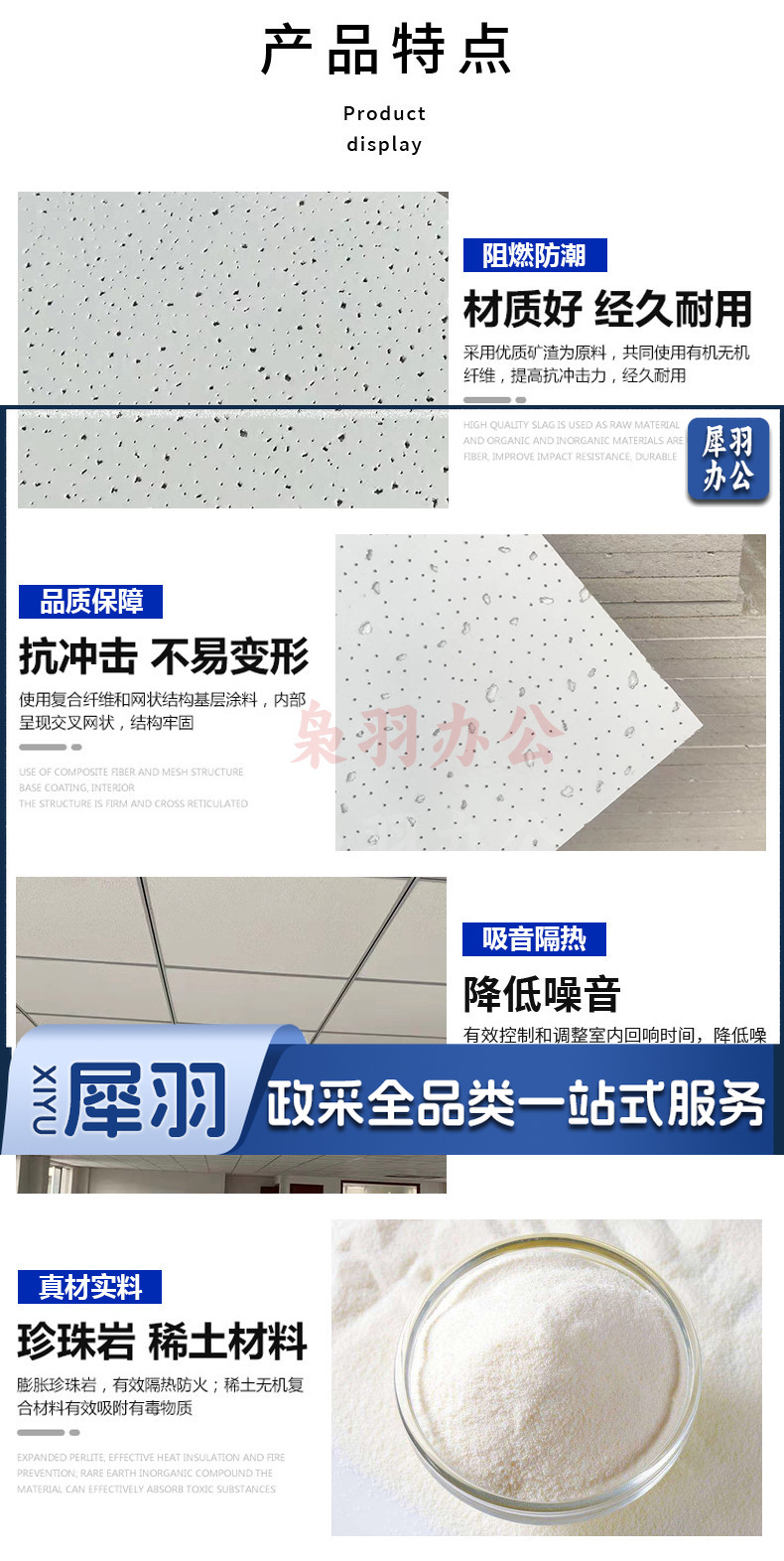 矿棉板600*600*1.4cm(防潮)防潮隔热黑色矿棉吸音板办公室天花板吊顶材料