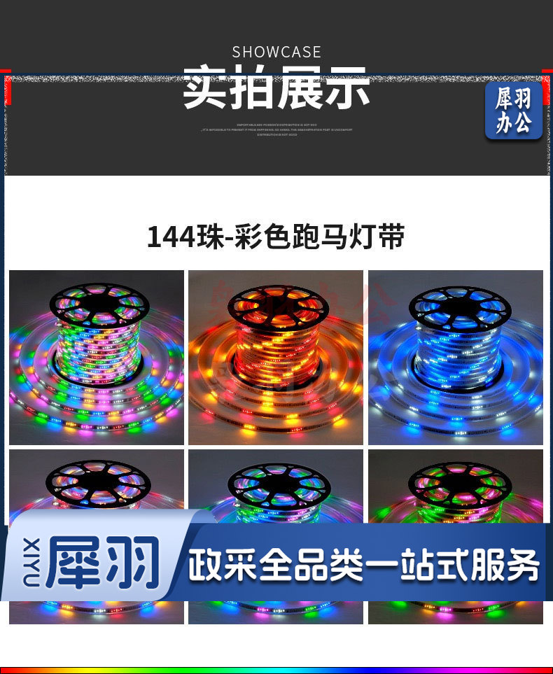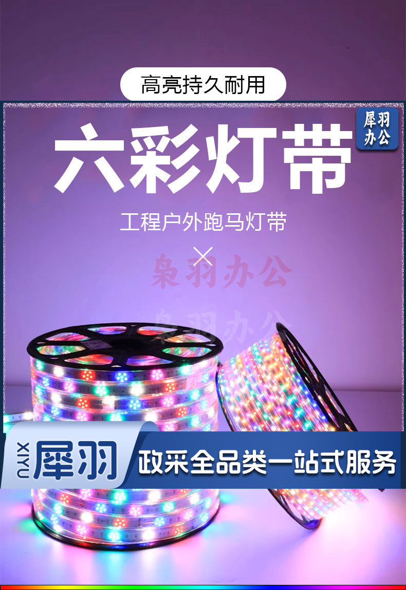 led高压六彩户外跑马流水灯带亮化工程招牌门头防水节日氛围灯(单排2835-72珠-12mm 两线六彩斜跳)