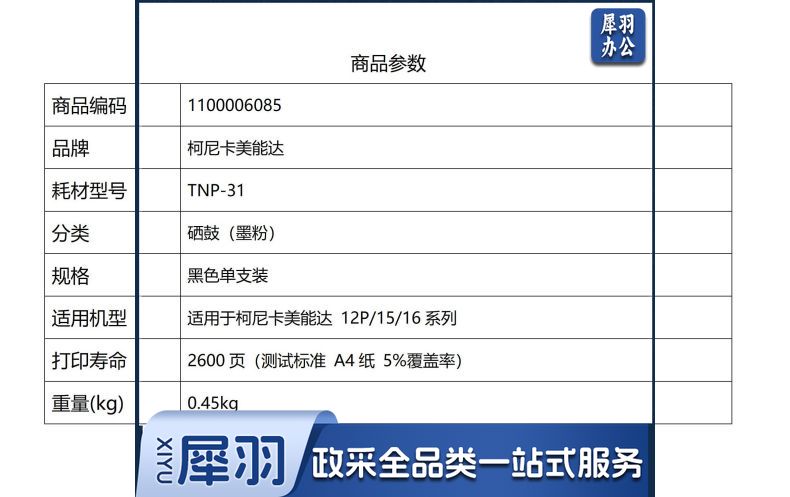 柯尼卡美能达 TNP31 墨粉 2600页 黑色 适用 bizhub 12P/15/16系列