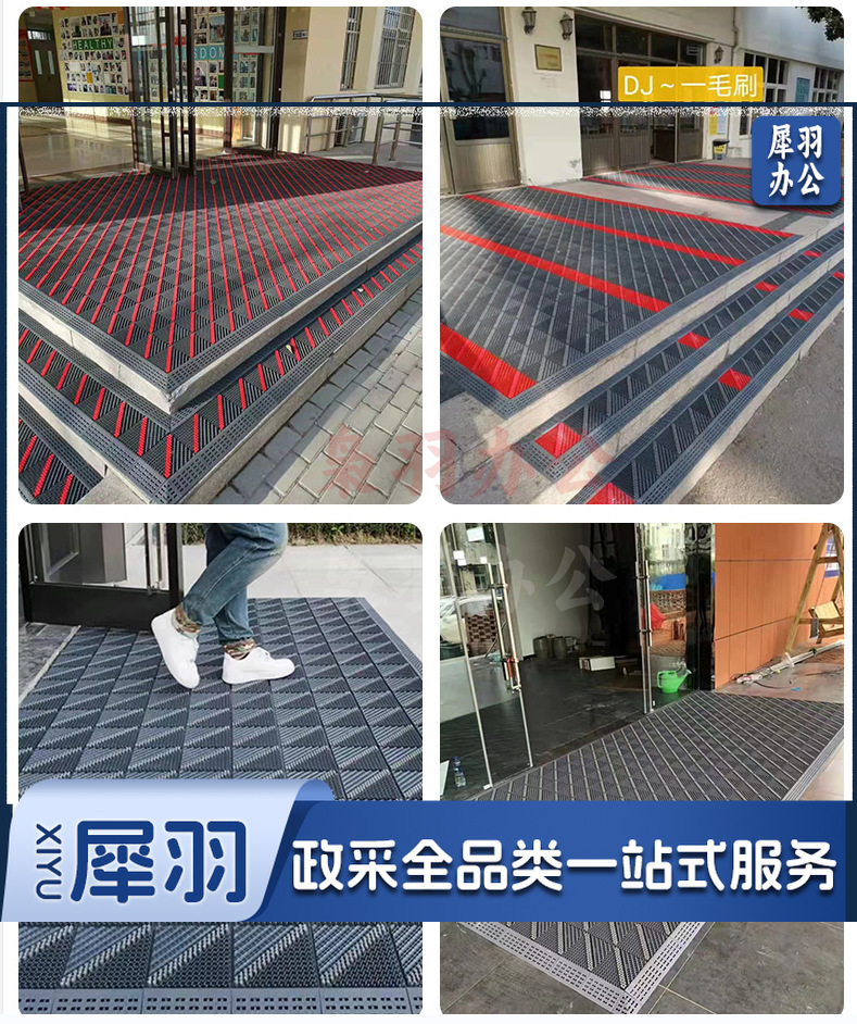 室外防滑防水地垫(灰色单刷灰毛60*90cm)塑料拼接除尘地板酒店入户门口毛刷镂空款式
