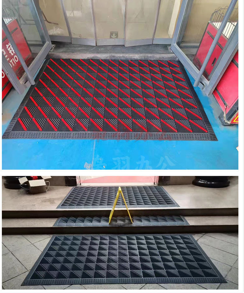 室外防滑防水地垫(灰色三刷灰毛105*240)塑料拼接除尘地板酒店入户门口毛刷镂空款式
