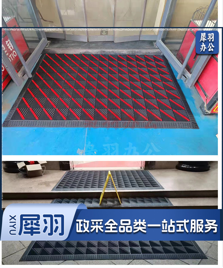 室外防滑防水地垫(灰色三刷红毛60*90)塑料拼接除尘地板酒店入户门口毛刷镂空款式