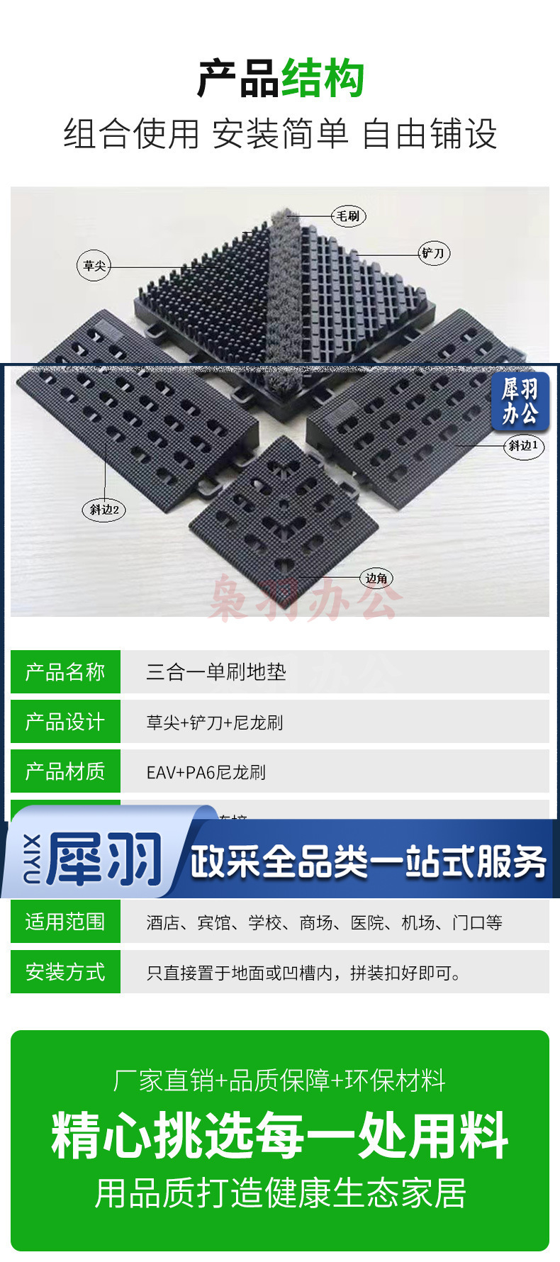 室外防滑防水地垫(灰色三刷红毛90*180)塑料拼接除尘地板酒店入户门口毛刷镂空款式