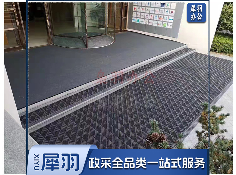 室外防滑防水地垫(灰色三刷红毛105*180)塑料拼接除尘地板酒店入户门口毛刷镂空款式