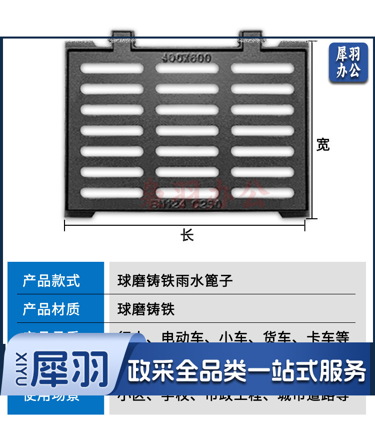 球墨铸铁排水沟盖板雨水篦子(沟盖板400*500*D400)下水道污水电缆盖板水槽地沟格删井盖