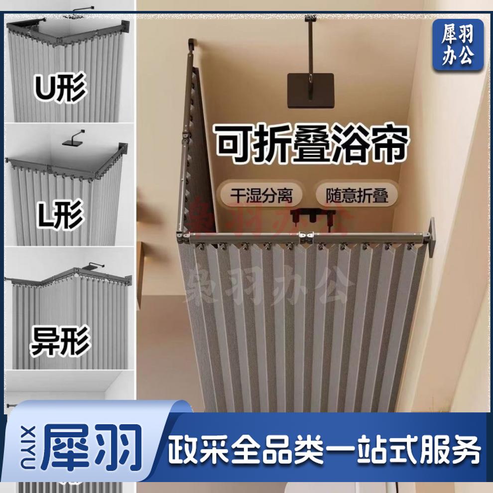 窗帘(帘100宽200高)可叠式杆浴帘套装隐形浴室隔断防水卫生间打孔高档干湿淋浴分离窗帘