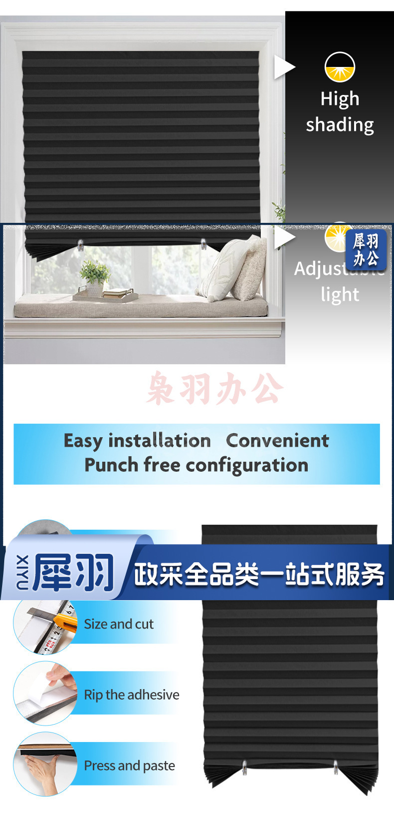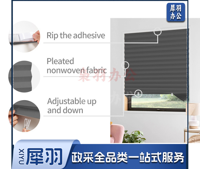 遮阳窗帘简易无纺布百褶帘百折帘免打孔胶粘折叠半全遮光百叶窗帘(定制尺寸)