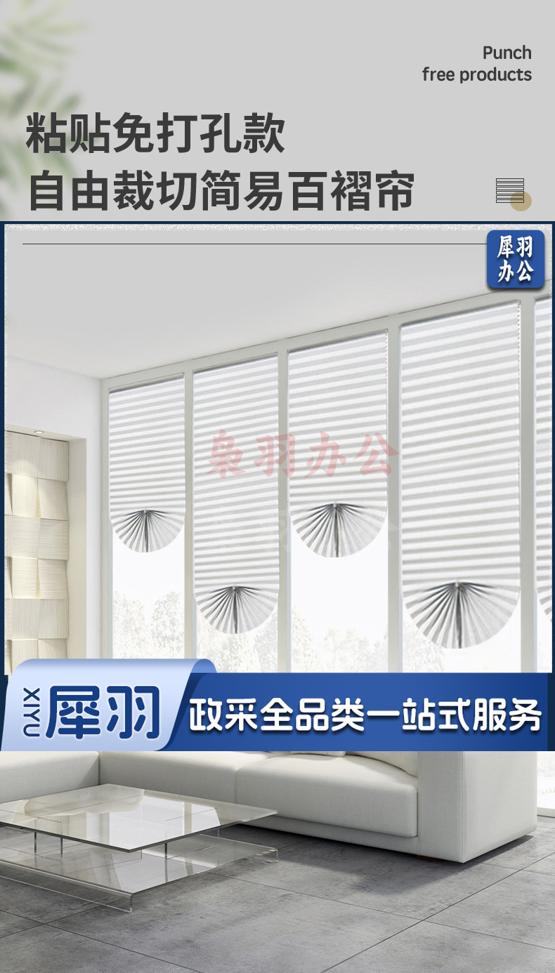 遮阳窗帘简易无纺布百褶帘百折帘免打孔胶粘折叠半全遮光百叶窗帘(定制尺寸)