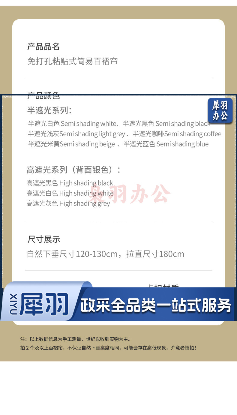 遮阳窗帘简易无纺布百褶帘百折帘免打孔胶粘折叠半全遮光百叶窗帘(定制尺寸)