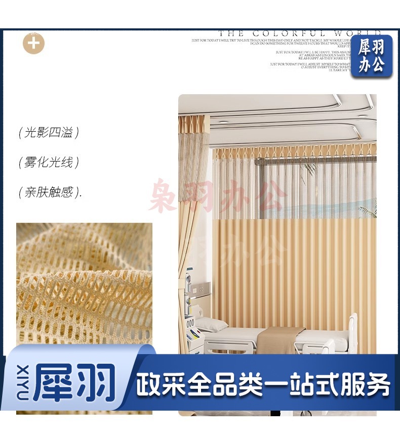 医美床帘美容院隔断窗帘不透人U型L型帘轨道弯轨(上门测量,详情咨询客服)